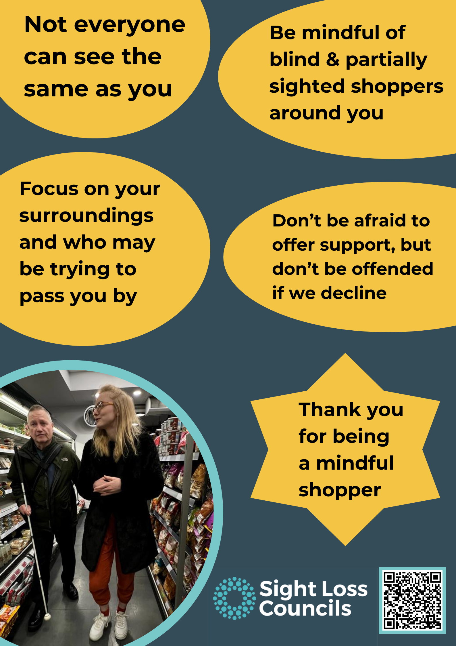 - Top tips for supermarket staff assisting blind and partially sighted customers in store – Contact us if you want a word version of this document.